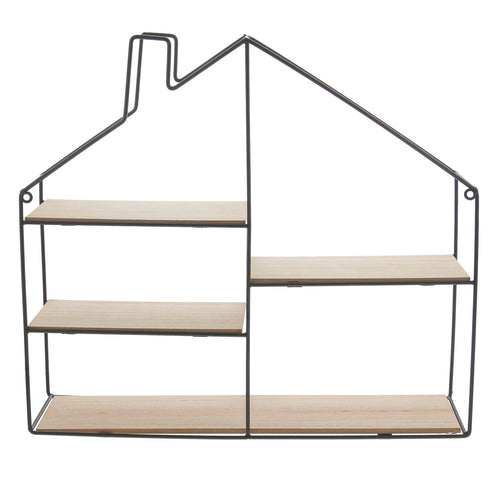 4-traps huis in zwart metaal en naturel hout