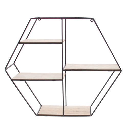 4-Traps zeshoek in zwart metaal en naturel hout