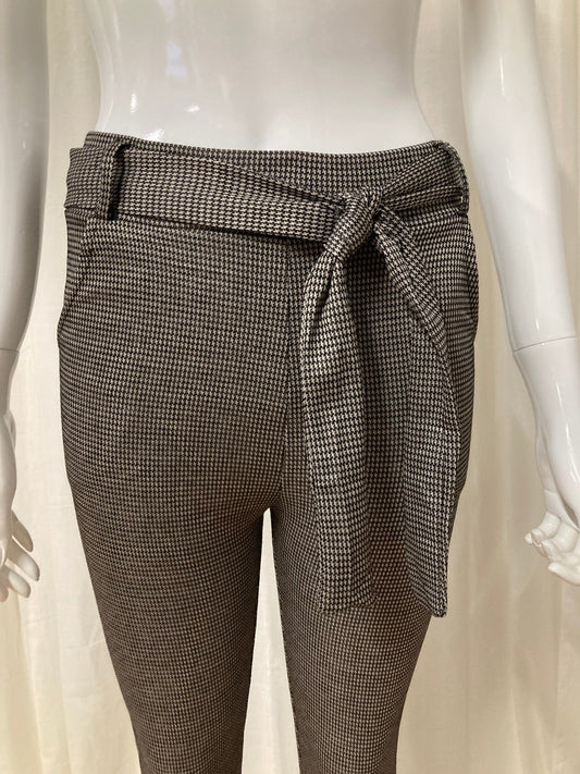 Slim-fit trousers in taupe gingham pattern, fleece inside with pockets and belt