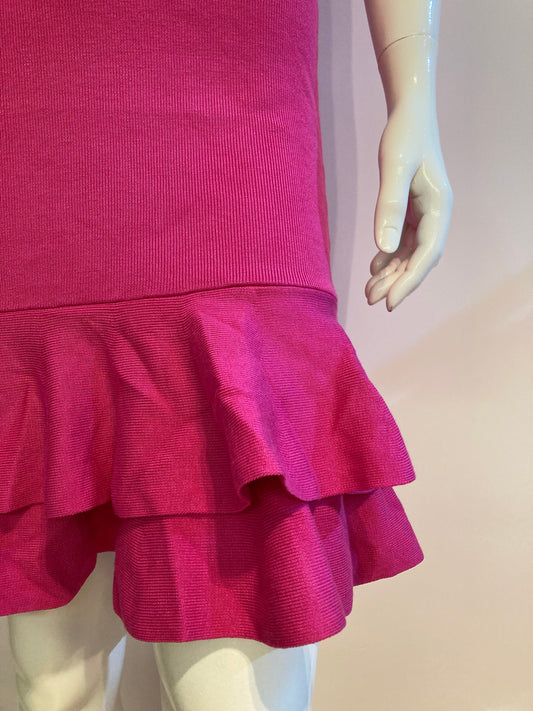 AanbiedingFuchia asymmetric ribbed ruffle tube dress