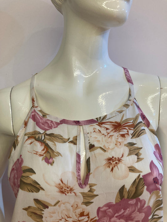 Beige top with large silver sequin on the front