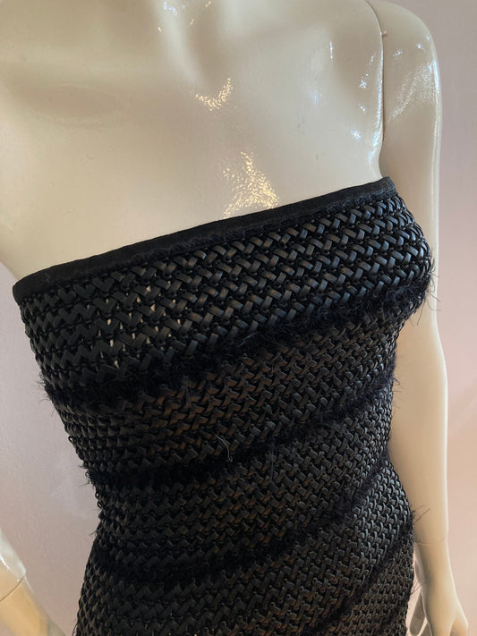 Braided and stretchy black faux leather dress with back closure