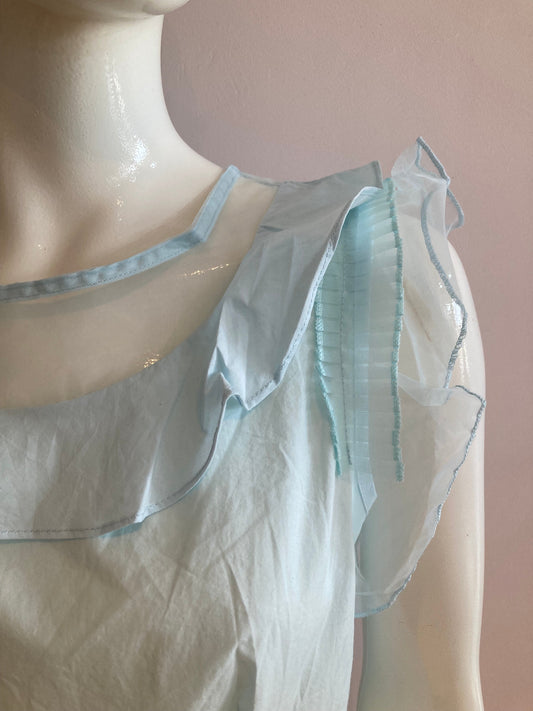 AanbiedingBlue blouse with flounce and tulle