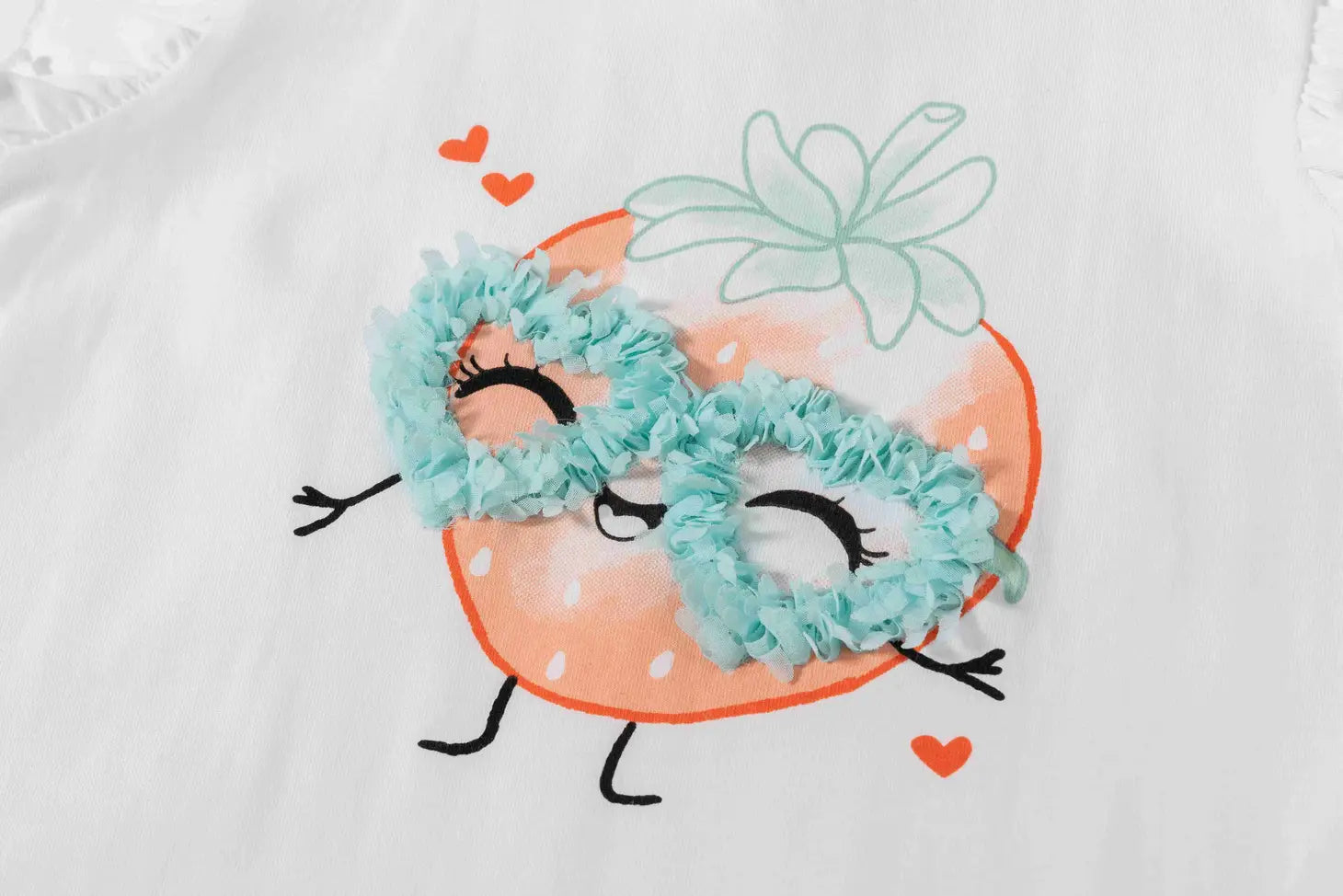 T-shirt met ruches mouwen en aardbei met bril