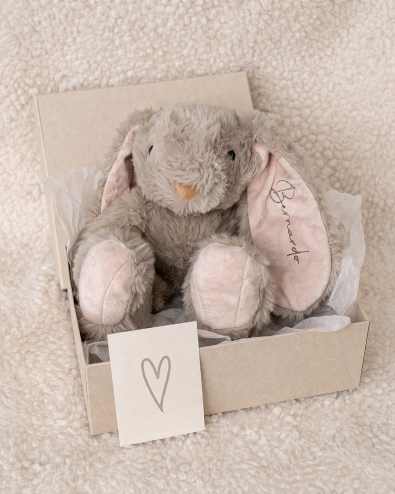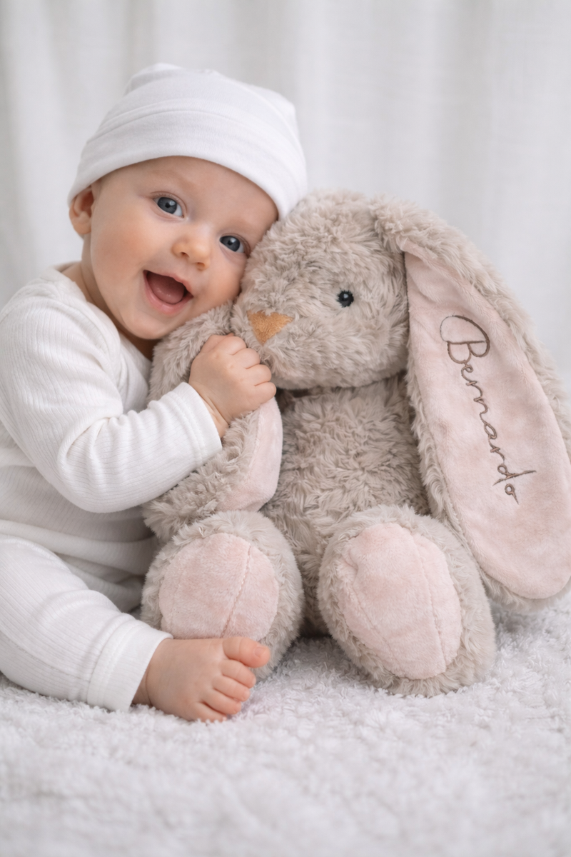 Met naam geborduurd wordt deze Bunny een uniek en blijvend knuffelvriendje – van de eerste knuffels tot jaren later 🤍