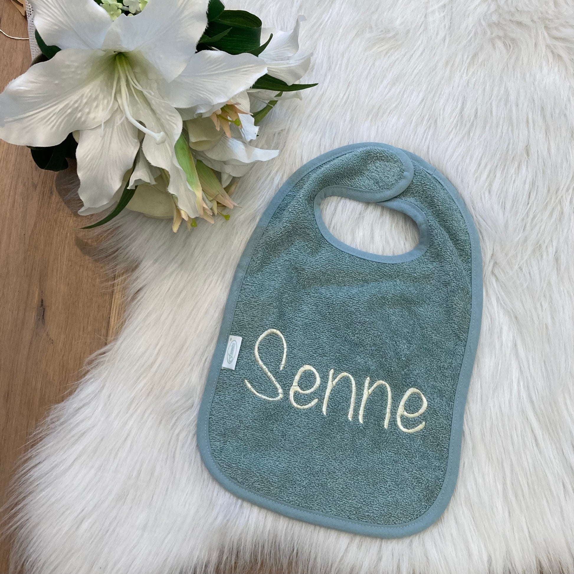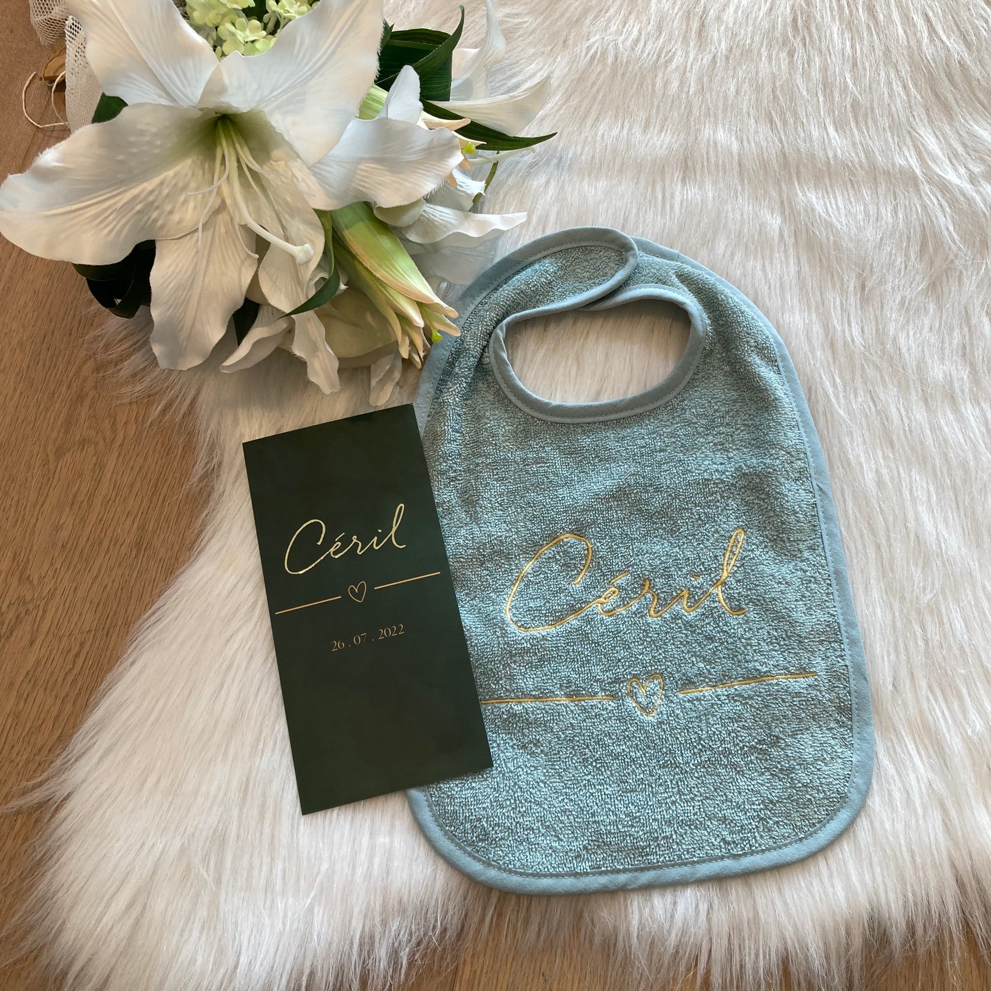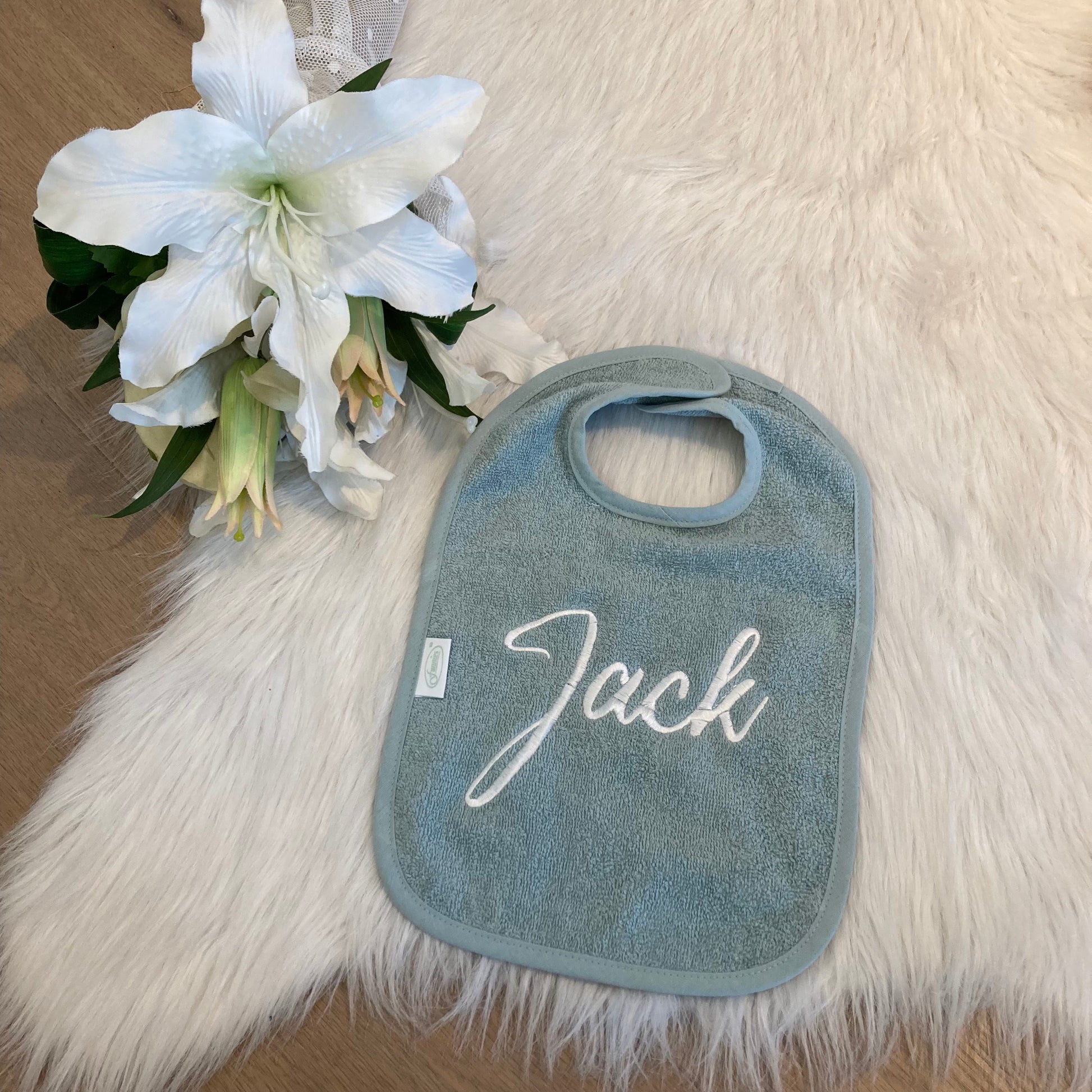 Slab met naam | Gepersonaliseerde baby slab katoen | Forest Moss