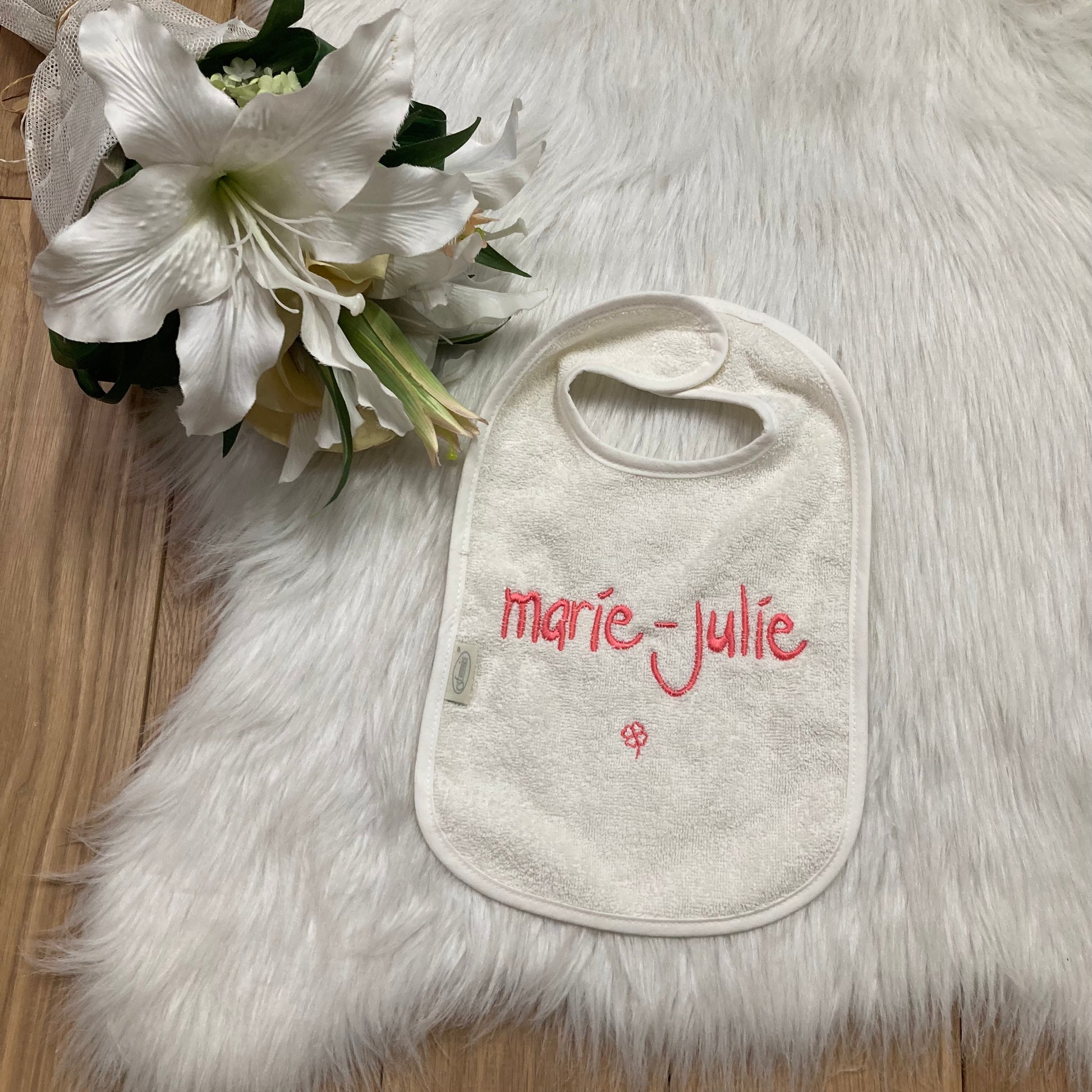 Slab met naam | Gepersonaliseerde baby slab katoen | Vanilla Milk