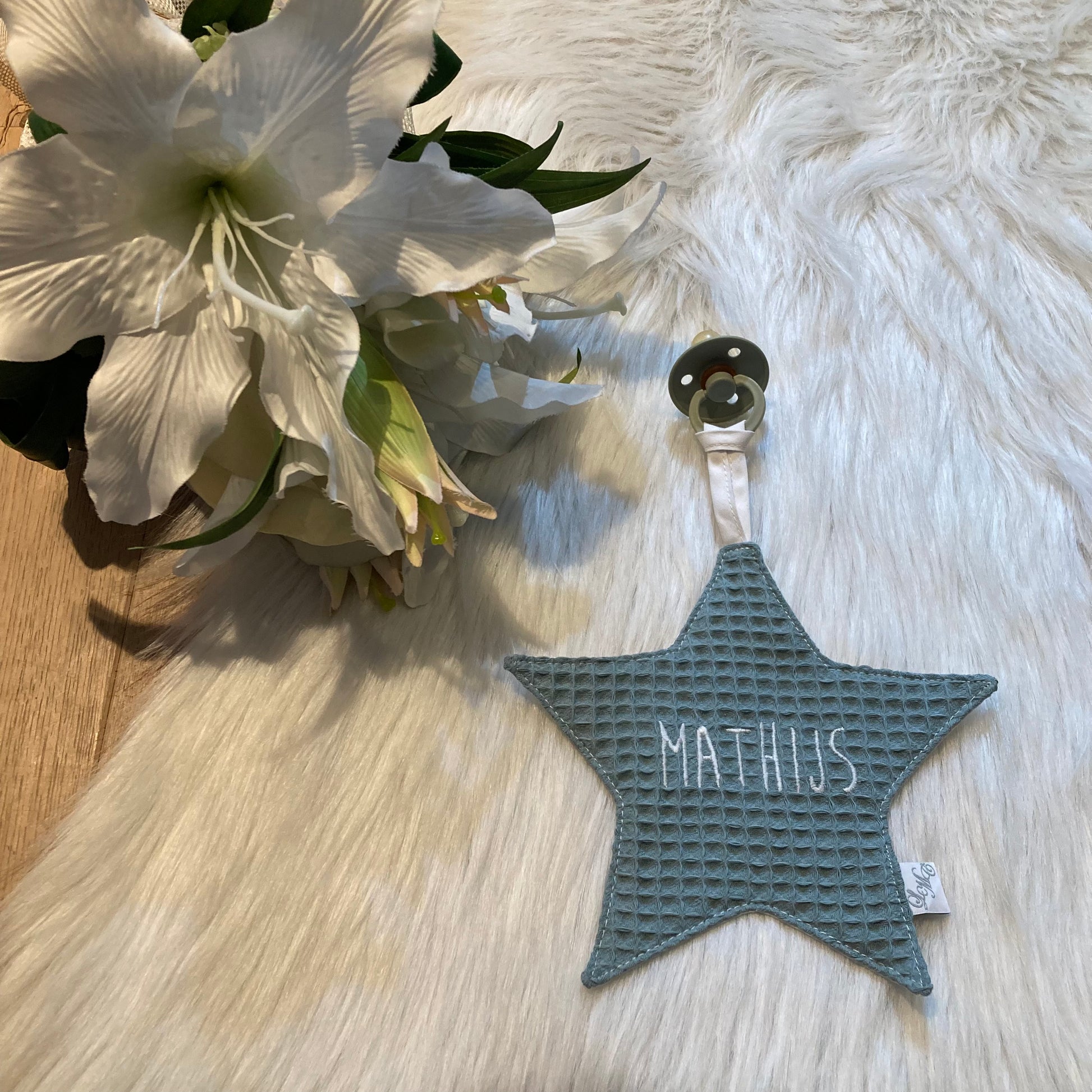 Speendoek ster wafel Zeegroen