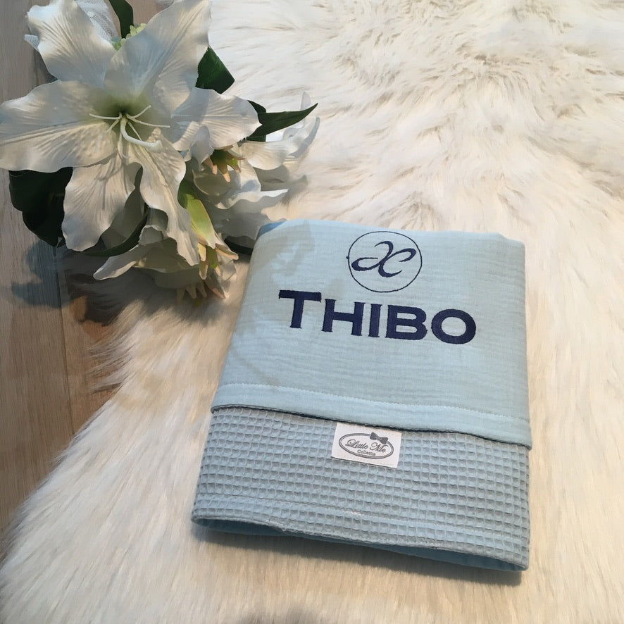 Warm Wafel Zomerdekentje met naam | Gepersonaliseerde | Sky Blue